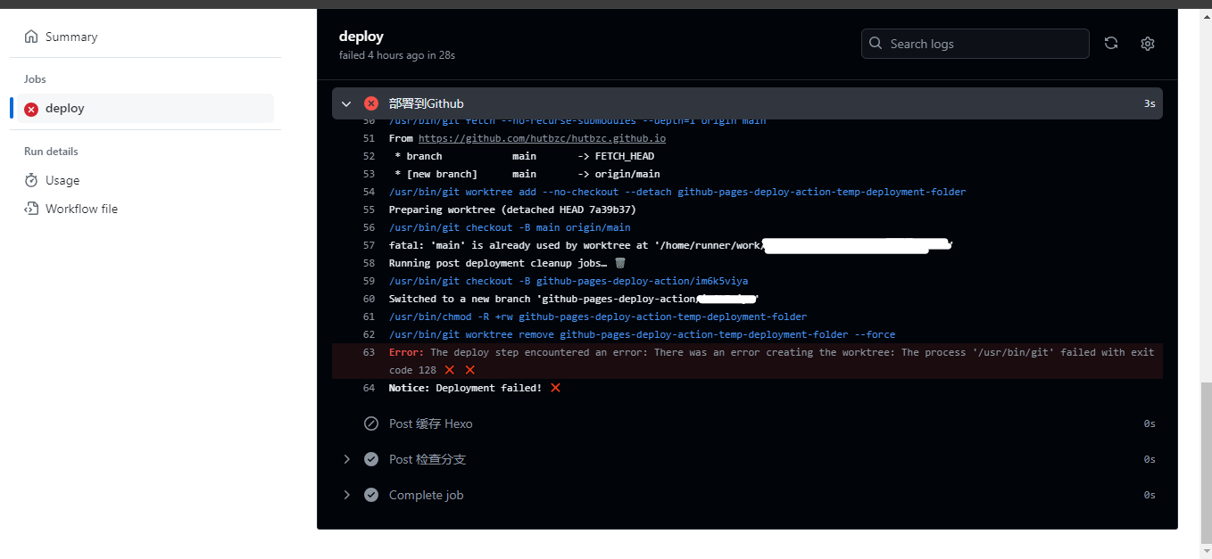 1 | fatal: 'main' is already used by worktree at '/home/runner/work/xxxx/xxxx' |