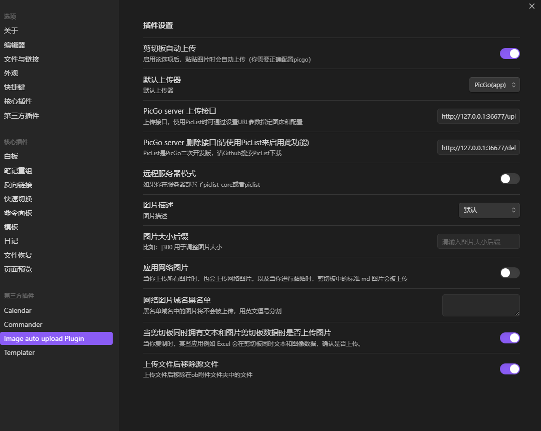 后台挂好PicGo,图片直接粘贴进obsidian,即可自动上传至图床,并使用正确的链接