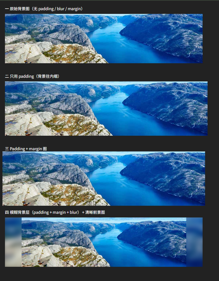 <div class="title">四 模糊背景层(padding + margin + blur) + 清晰前景图</div>
