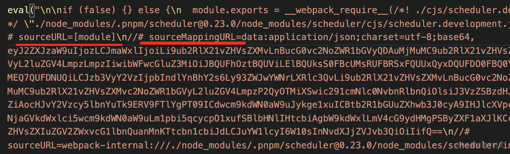 你会发现生成的代码也是用 eval 包裹的,但除了 sourceUrl 外,还有 sourceMappingUrl: