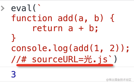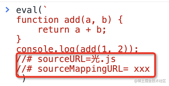 浏览器支持了这样一种特性,只要在 eval 代码的最后加上 //# sourceURL=xxx,那就会以 xxx 为名字把这段代码加到 sources 里。那不就可以打断点了么?