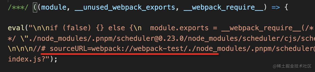 生成的代码就是每个模块都被 eval 包裹的,并且有 sourceUrl 来指定文件名: