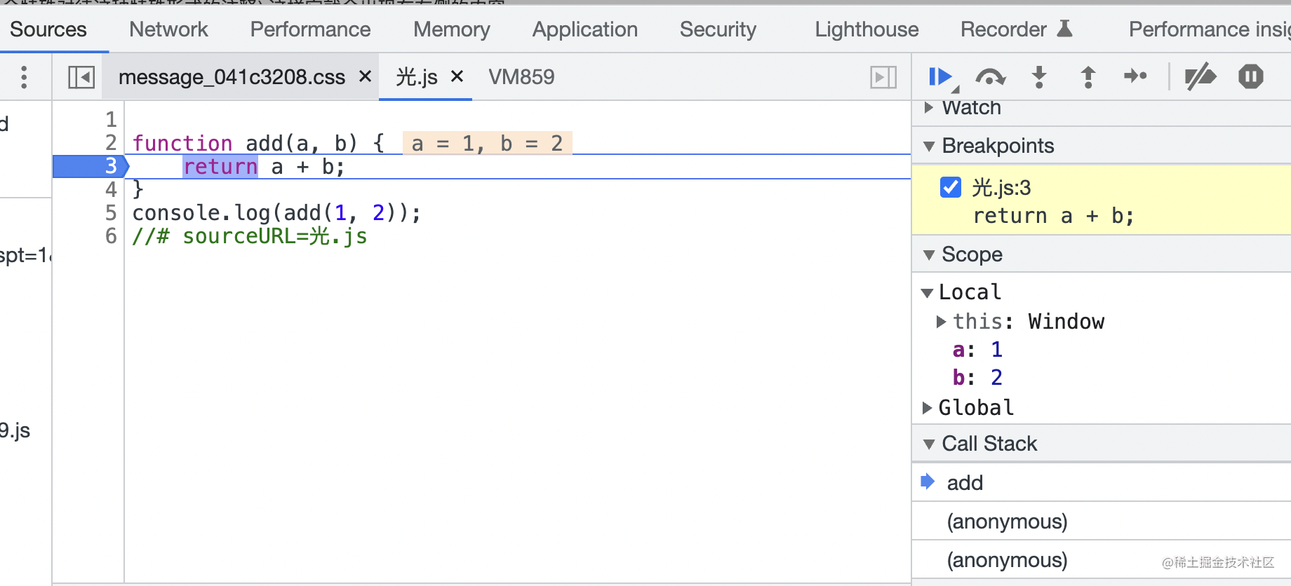 它是可以打断点的,比如在 add 里打个断点,然后再执行 eval。