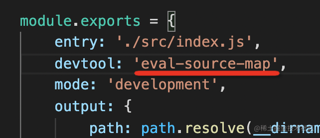 - eval:浏览器 devtool 支持通过 sourceUrl 来把 eval 的内容单独生成文件,还可以进一步通过 sourceMappingUrl 来映射回源码,webpack 利用这个特性来简化了 sourcemap 的处理,可以直接从模块开始映射,不用从 bundle 级别。