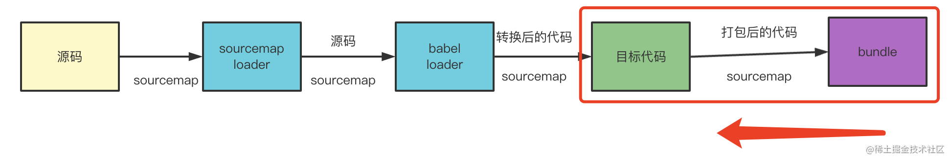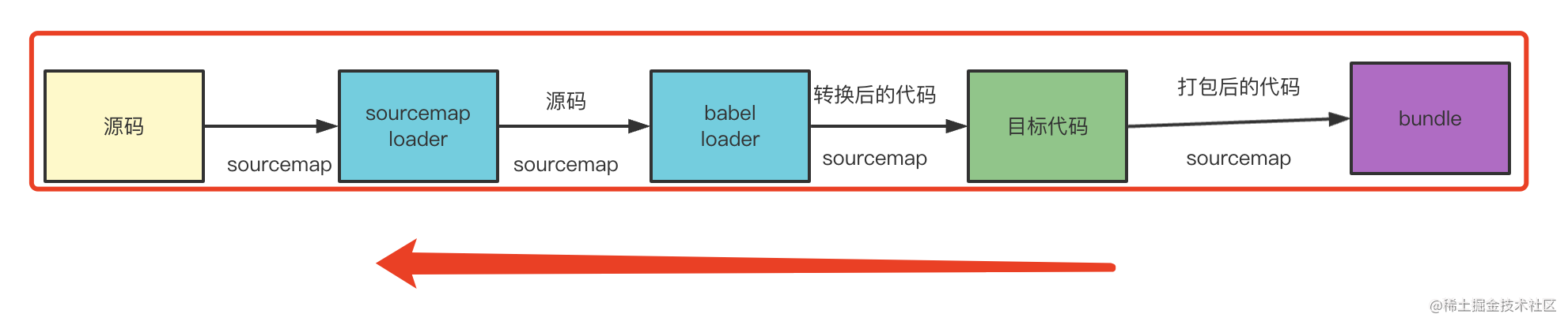 默认 sourcemap 只是能从 bundle 关联到模块的代码,也就是只关联了最后那个 sourcemap。