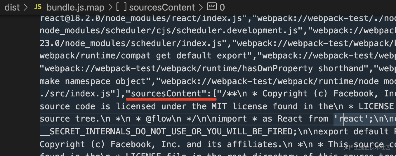 当你加上 nosources 之后,生成的 sourcemap 就没有 sourceContent 部分了: