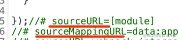 这里有两个 sourceURL,第一个 sourceURL 在 sourceMappingURL 之前,这样 sourcemap 映射到的就是这个 url,也就是被 Chrome DevTools 当作文件的路径。而第二个 sourceURL 在之后,它可以修改当前文件的 url,也就是在调试工具里展示的路径。