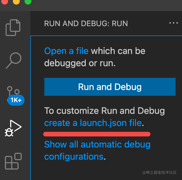 点击调试窗口的 create a launch.json file 来创建调试配置文件: