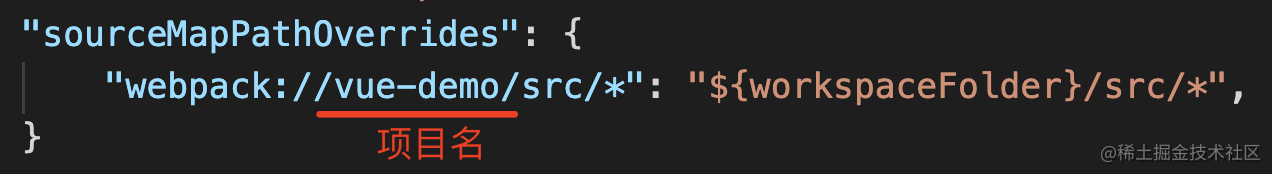 如果你创建的是 vue2 项目,可能还要在 launch.json 的调试配置加这样一段映射(只保留这一条):