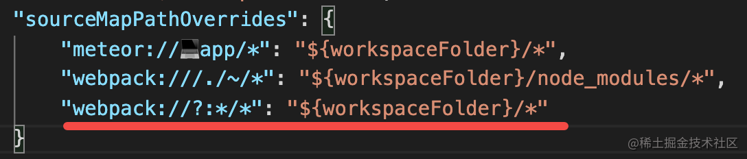 看一下 sourceMapPathOverrides 默认这三条配置,很容易看出是最后一条做的映射: