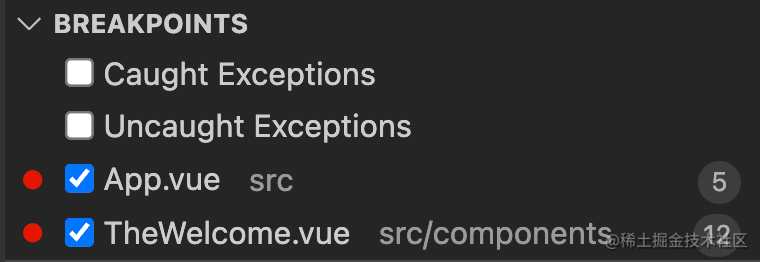 VSCode 会记录你在哪个文件哪行打了个断点。