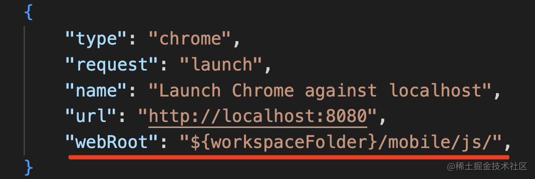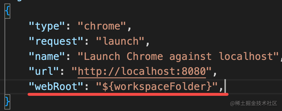 这就需要 webRoot 的配置了,默认是 workspaceFolder:
