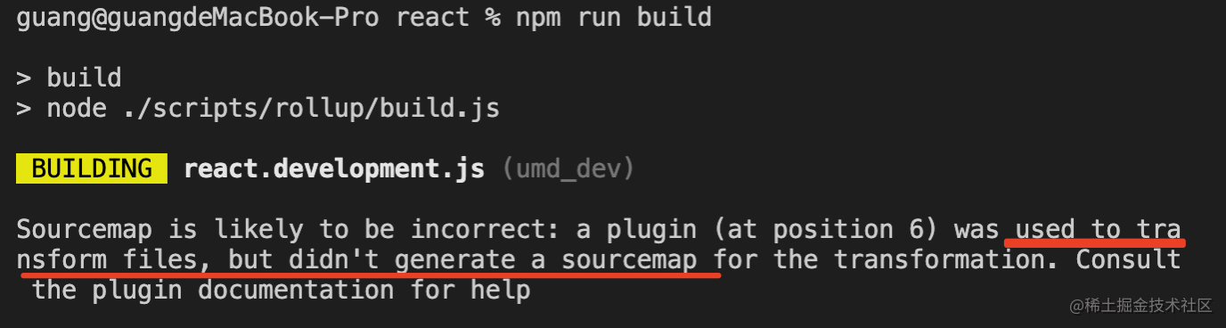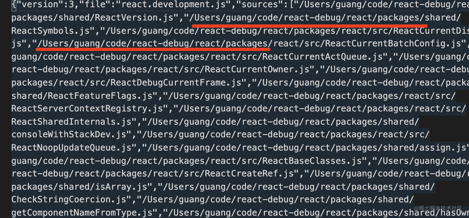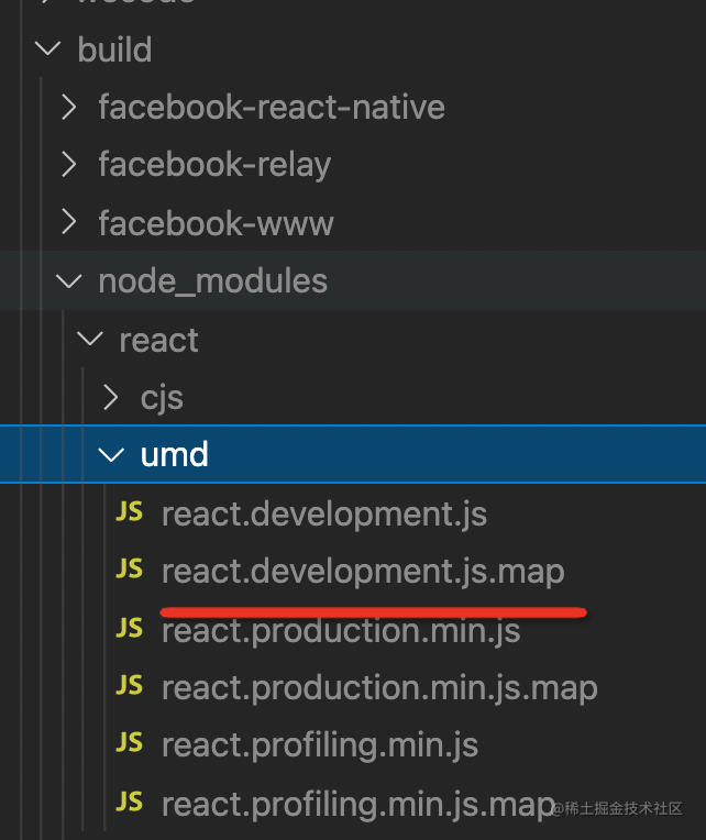 这就涉及到 sourcemap 的作用了。但是现在下载的 react、react-dom 包里都不带 sourcemap,我们得把 React 源码下载下来自己 build: