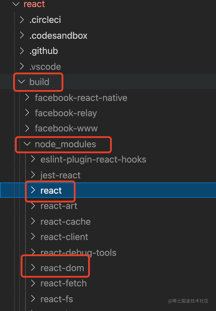 这里的 build/node_modules 下的 react 和 react-dom 包就是我们需要的。