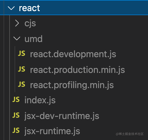 用 npm 下载的 react 包是这样的: