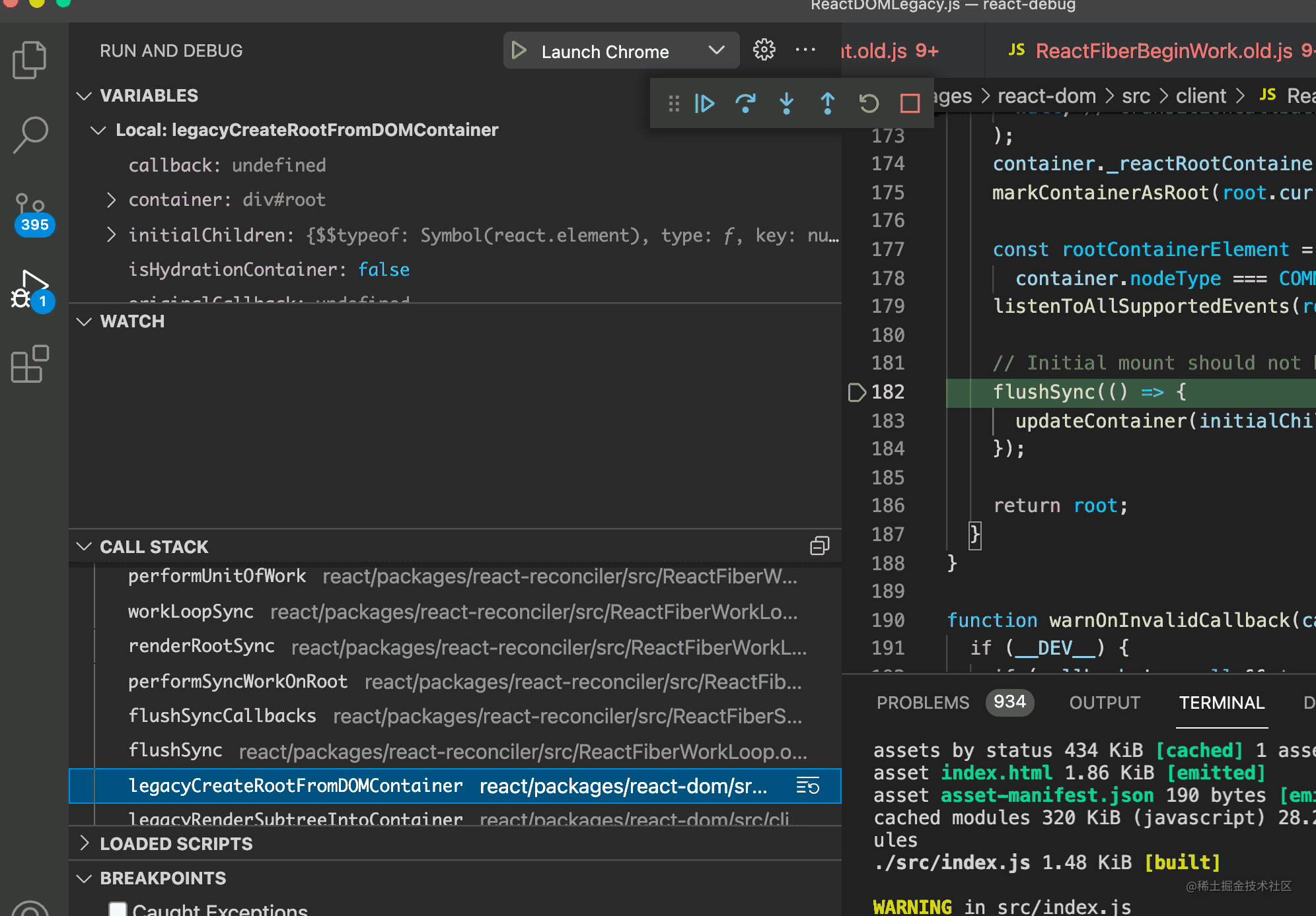 至此,我们就能优雅的调试 React 最初的源码了。