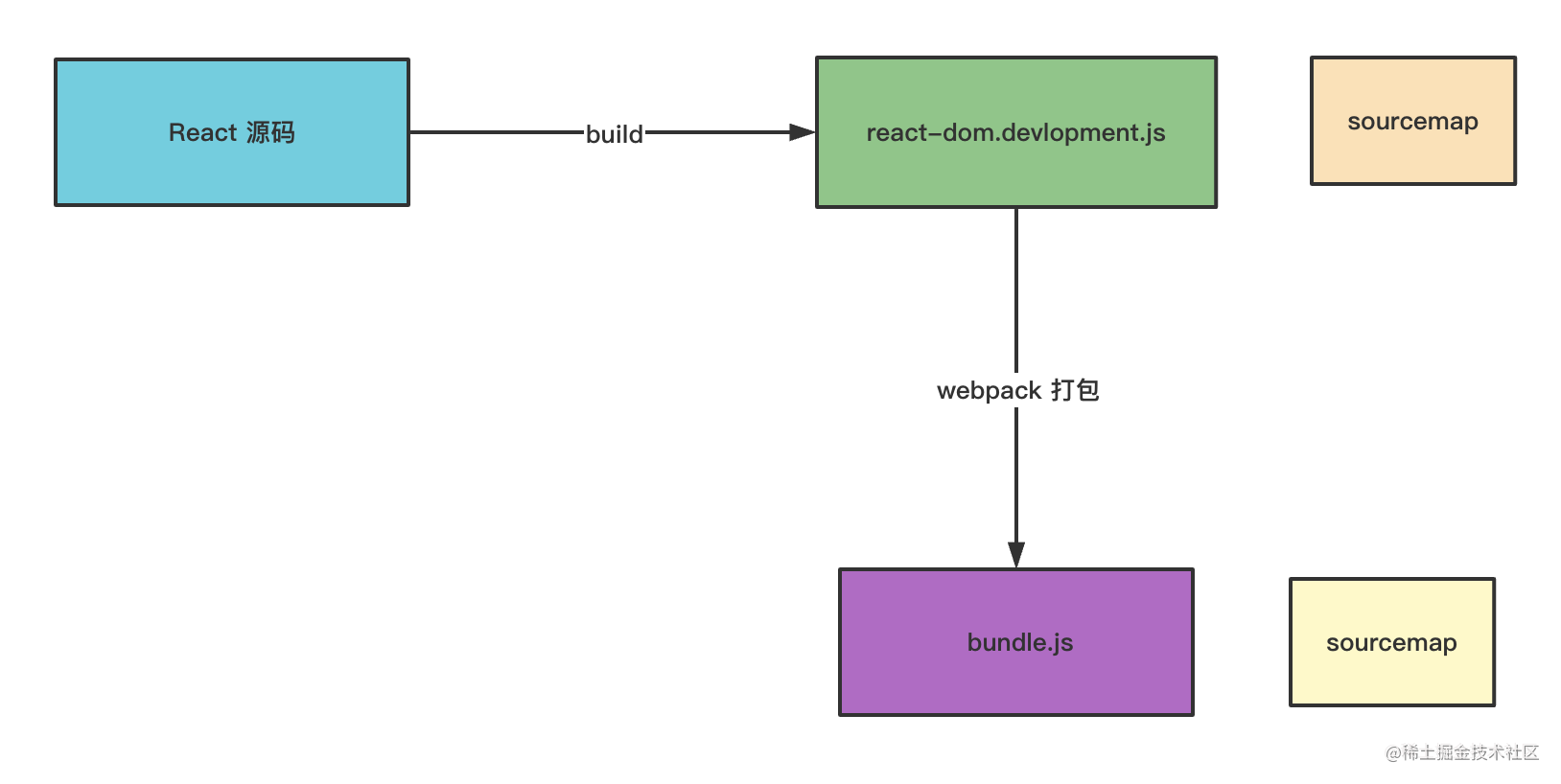 我们回过头来再来看一下,怎么能让 webpack 生成的 sourcemap 能一次性映射回 React 源码呢?