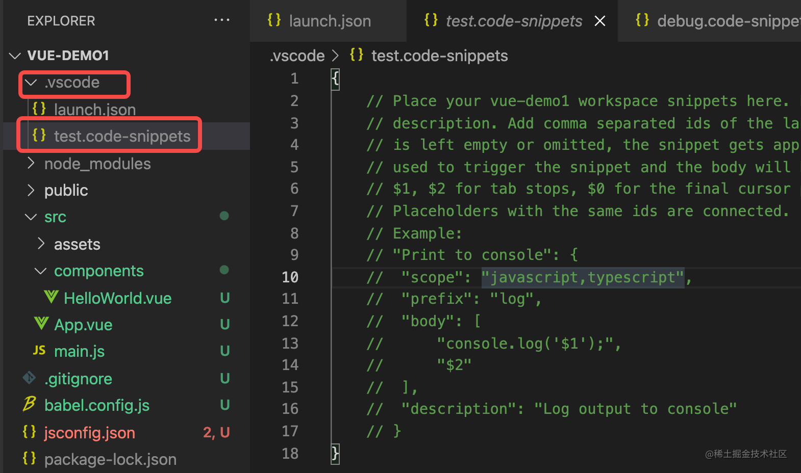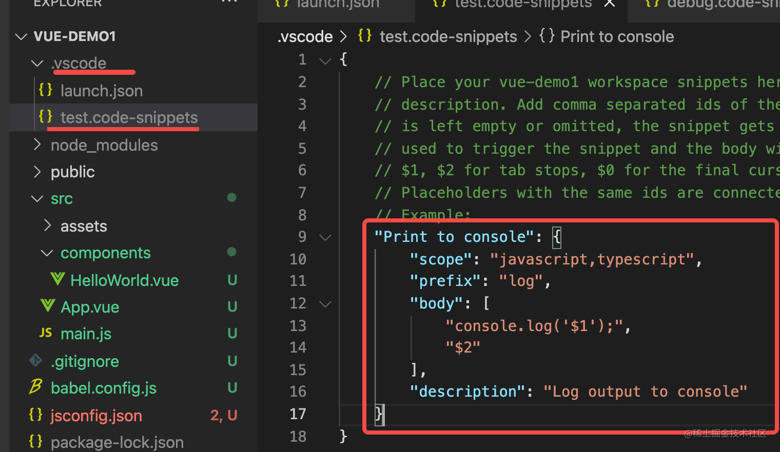 snippets 有项目、语言、全局三种生效范围,调试配置一般是要做成全局的 snippets。