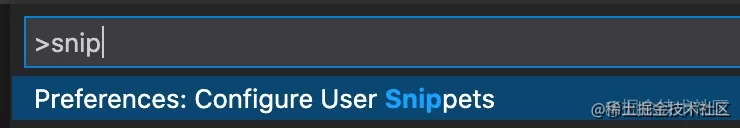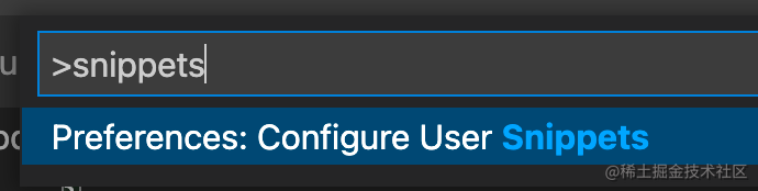 按住 cmd + shift + p 调出 VSCode 命令面板,输入 snippets,选择 Configure User Snippets: