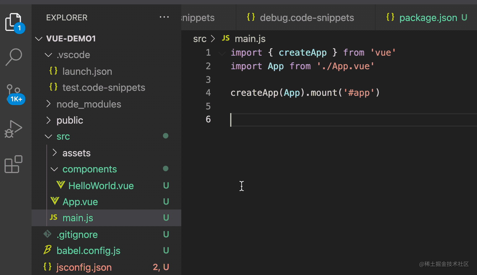 创建一个项目级别的 Snippets: