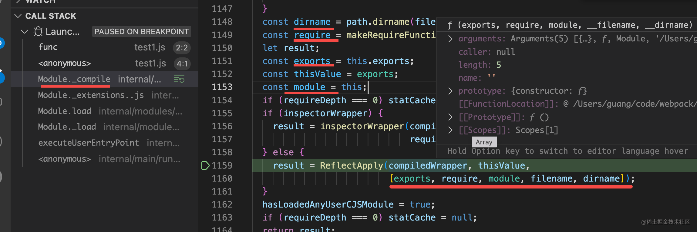 我们用 node 调试下: