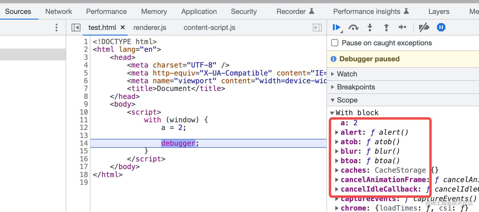 上面这些都是调试得出的,是 JS 引擎执行代码时的真实作用域。后面调试代码的时候就会遇到这些作用域。