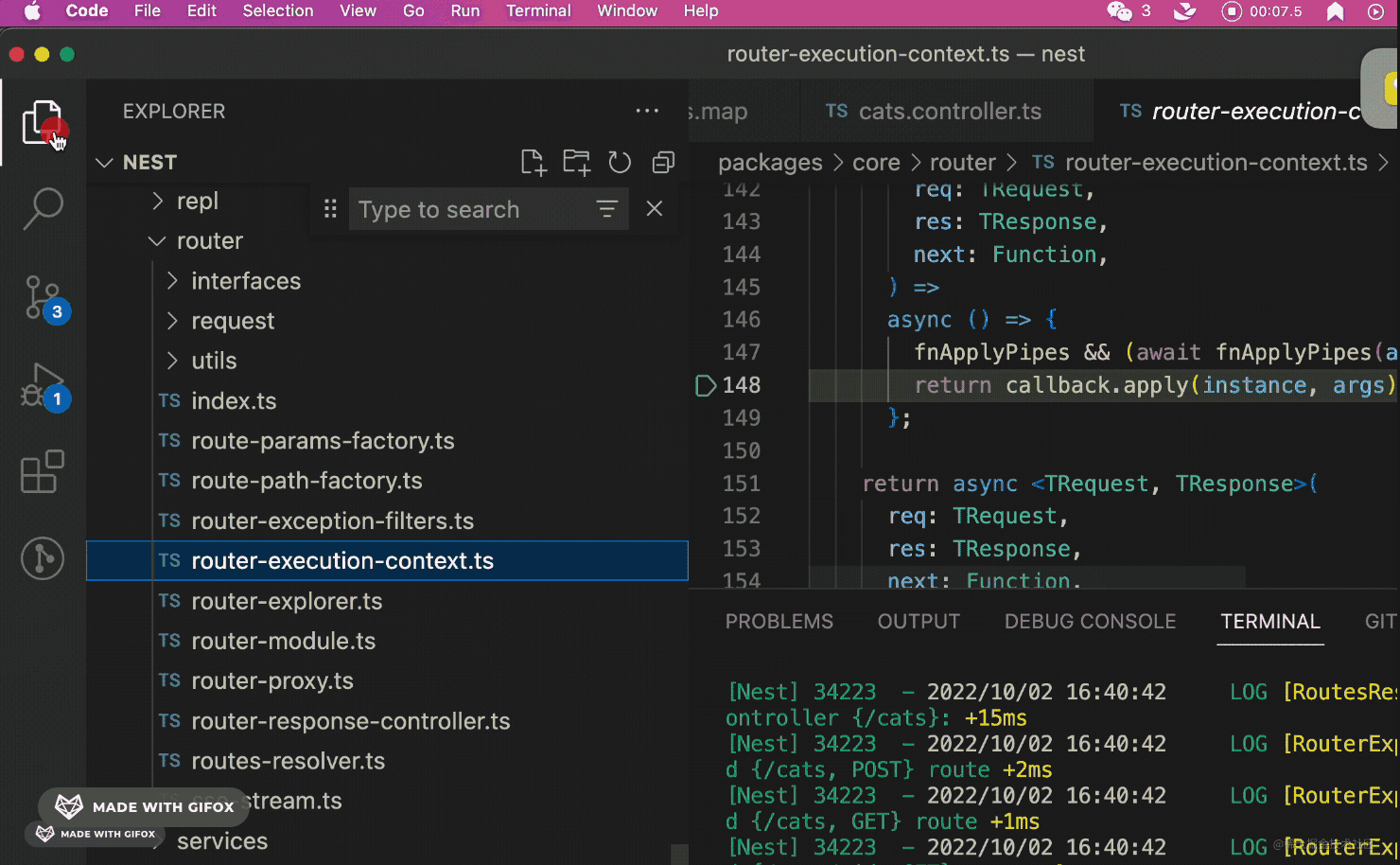 至此,我们就可以愉快的调试 Nest.js 源码了。