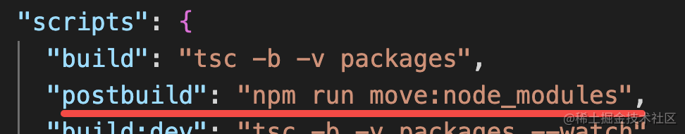 并且在 build 命令执行完之后会自动执行 postbuild: