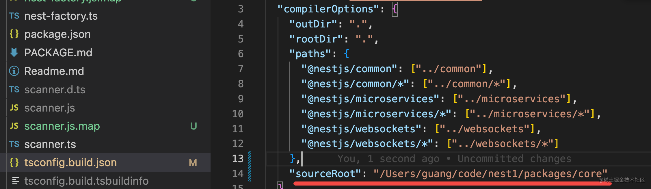 比如我设置了 core 包下的 tsconfig.build.json 的 sourceRoot 为 core 包的绝对路径: