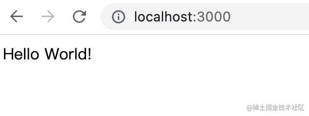 然后浏览器访问 http://localhost:3000 ,可以看到 Hello World,说明服务启动成功了。