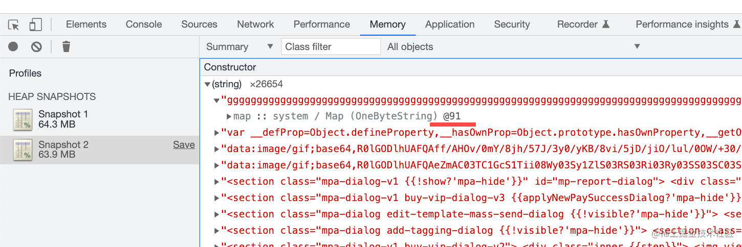 我过了一段时间再录制了一次快照,依然只有一个字符串,地址是 @91。