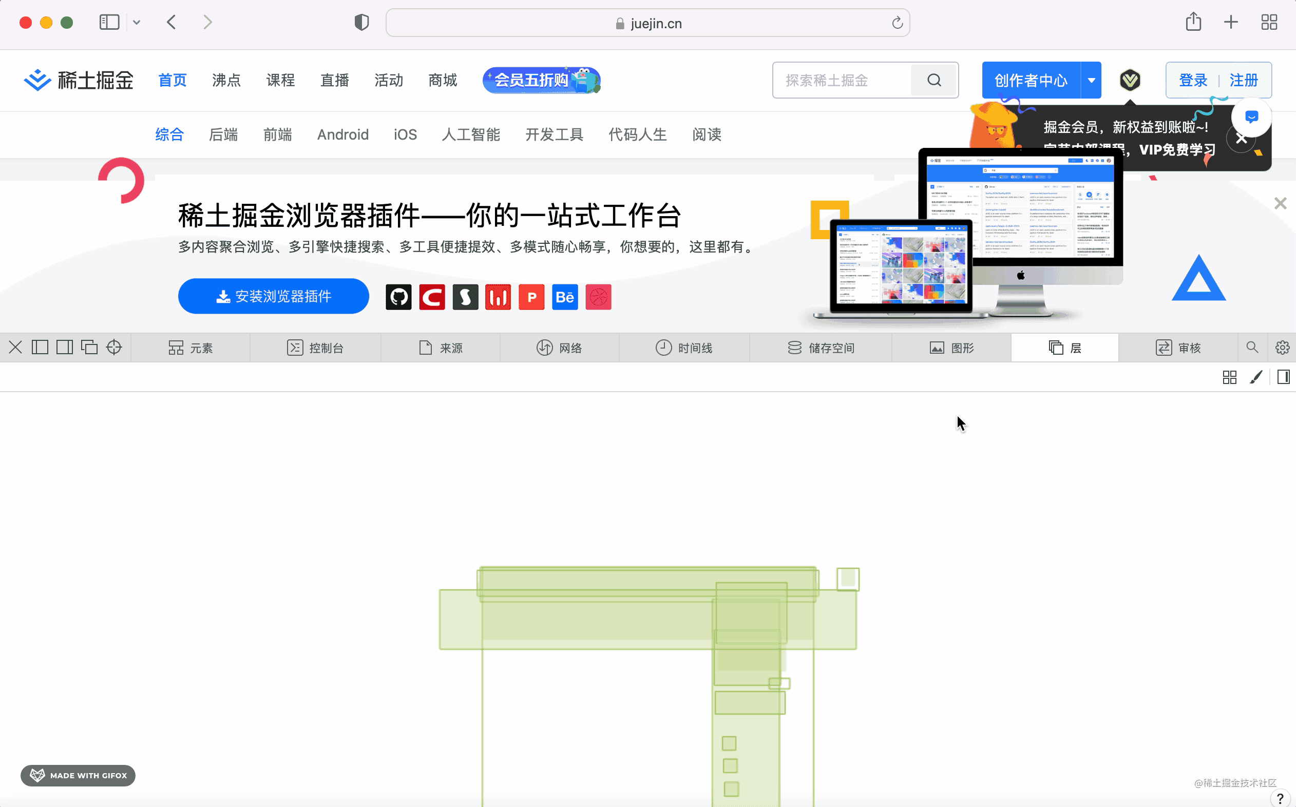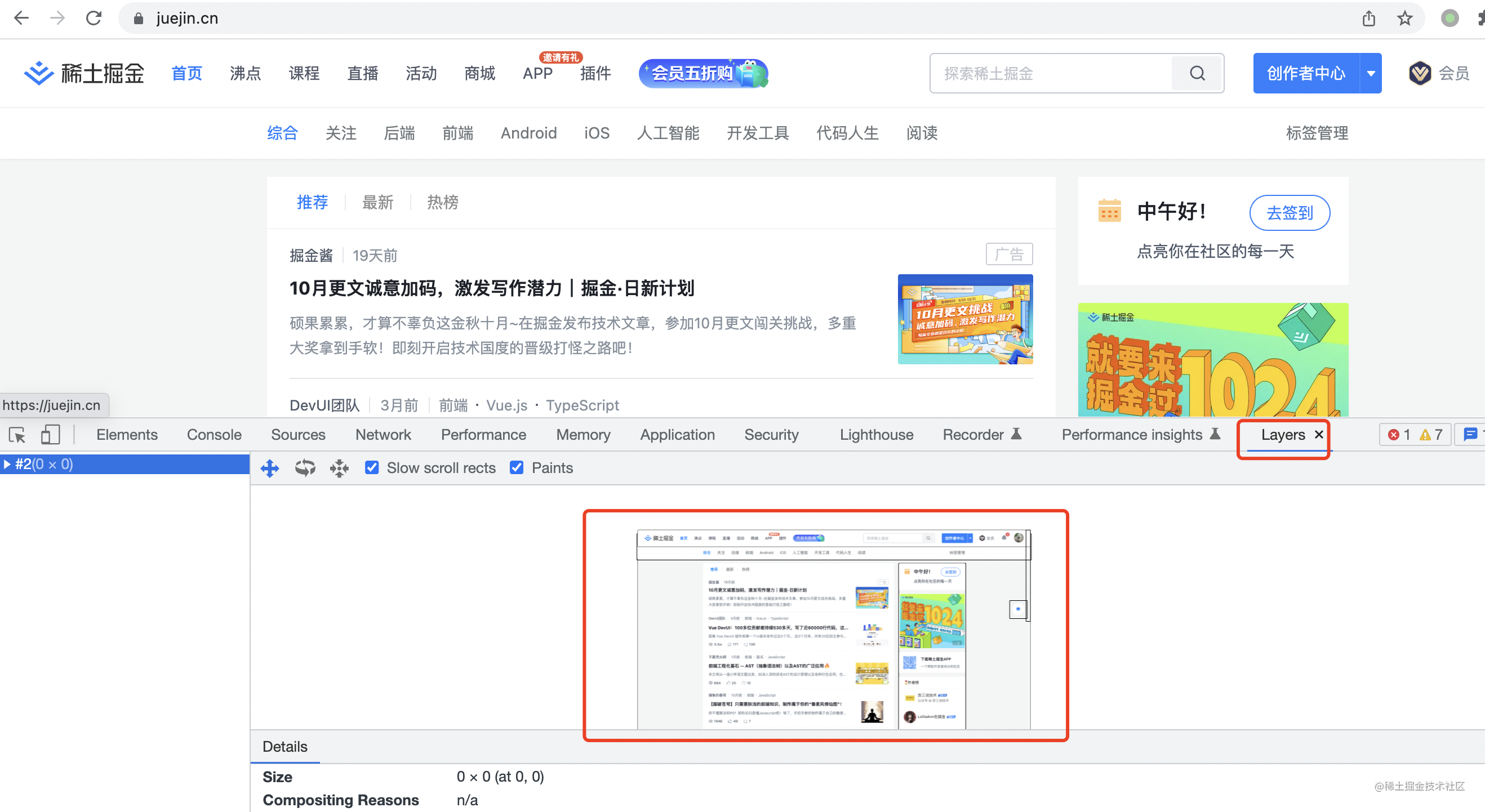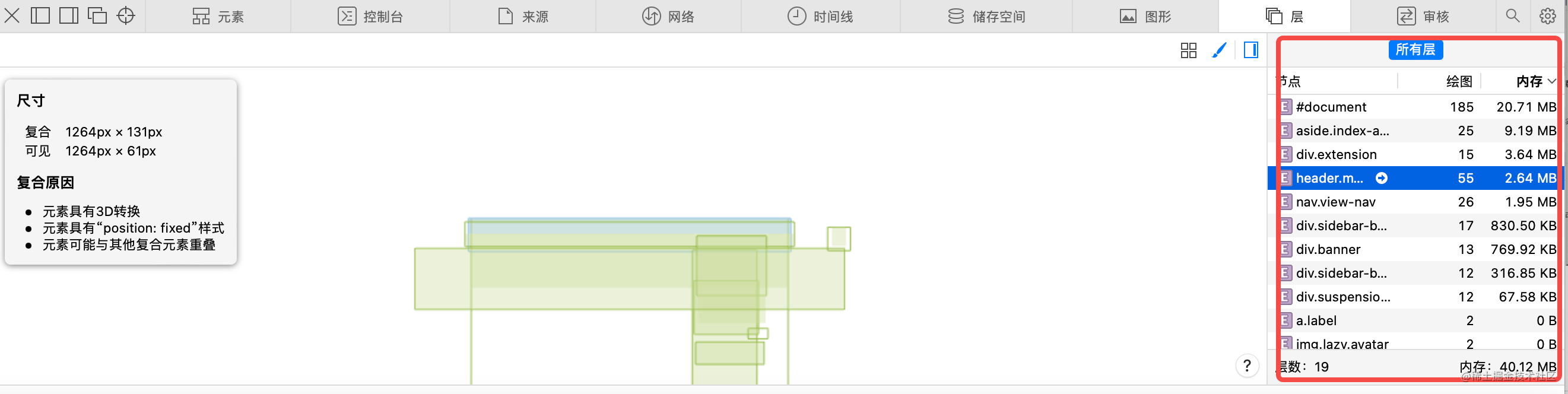 打开 DevTools,这个层就是用于图层分析的: