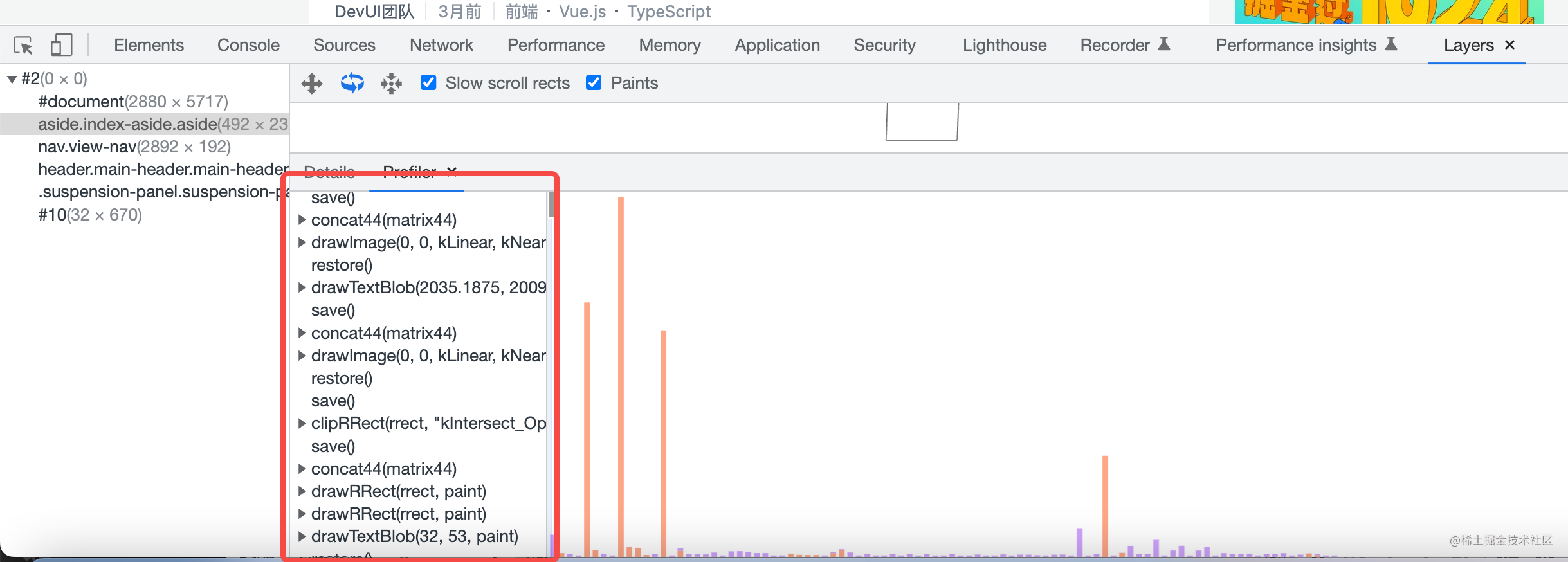点击下面的 Paint Profiler 可以看到这个图层绘制的过程: