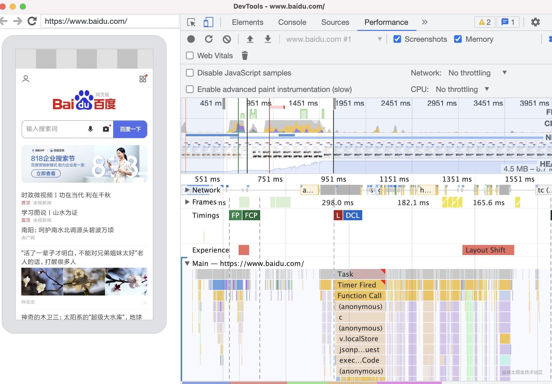 也可以用 Performance 分析性能: