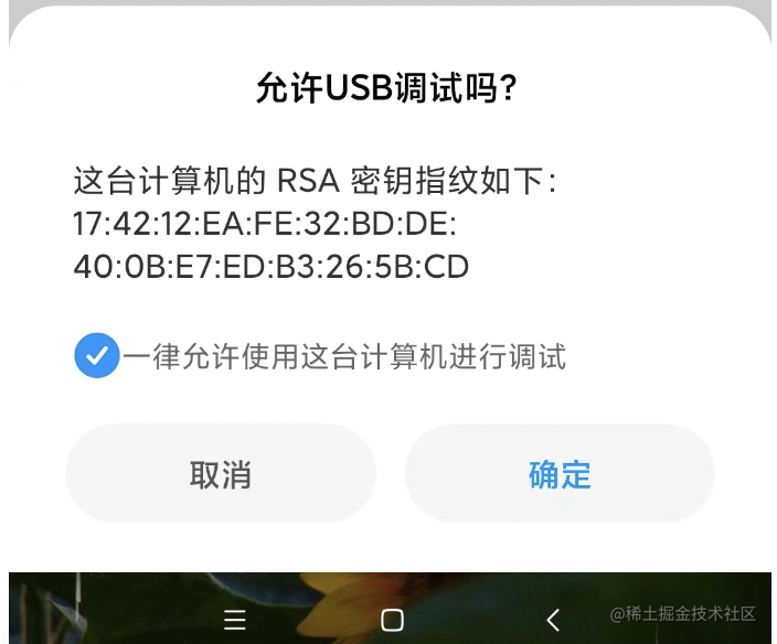 这时候下面就会出现一个提示:请在设备上接受 debugging 会话