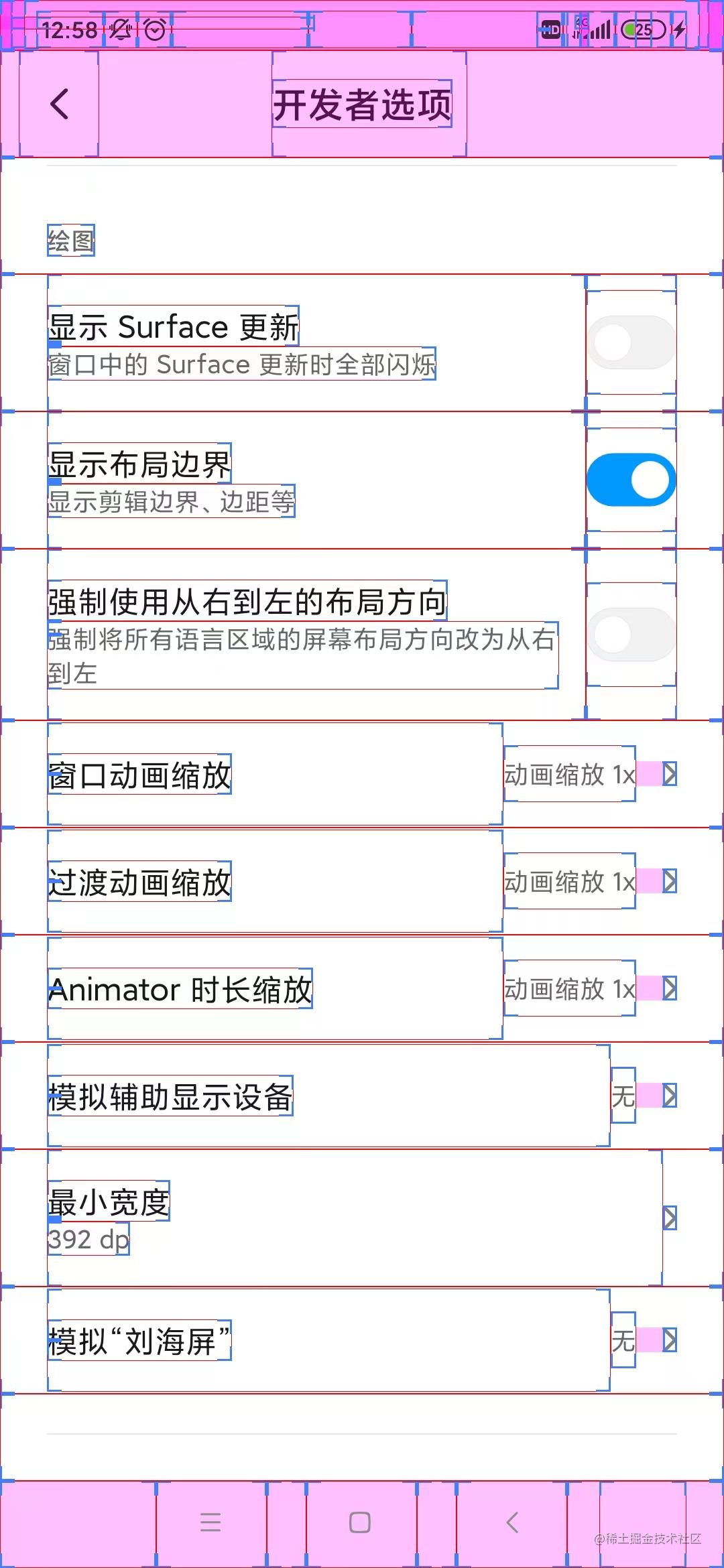 Android 下可以在设置里打开显示布局边界: