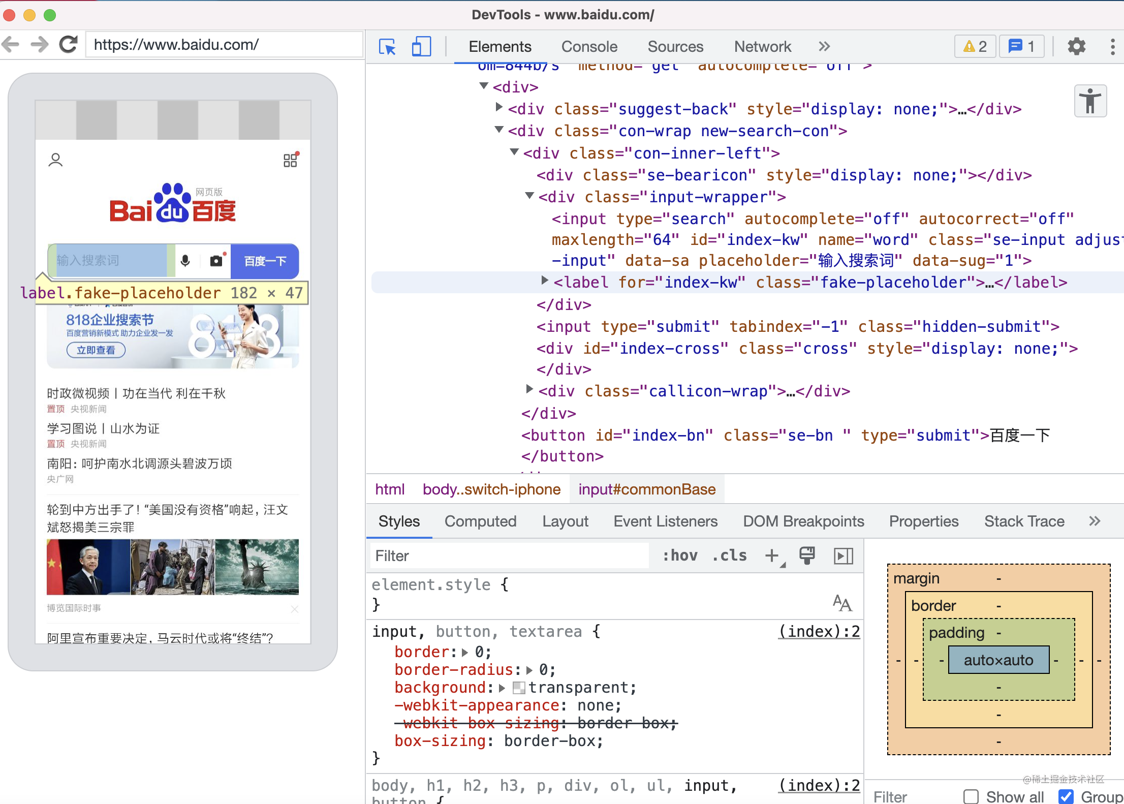 可以审查元素: