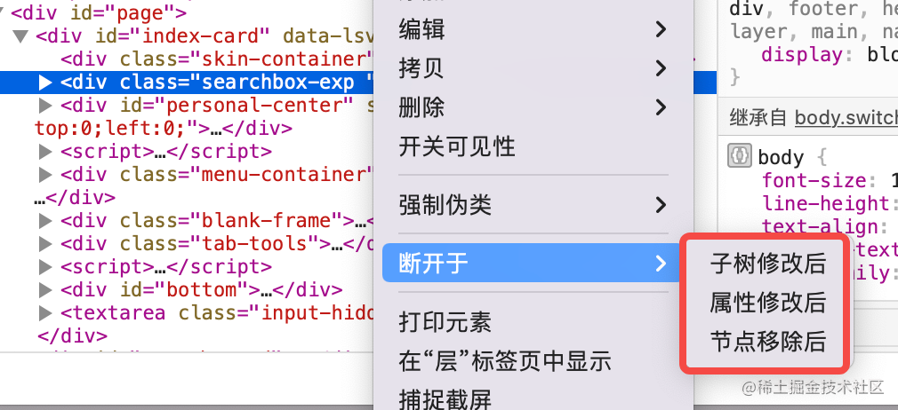 而且在 Chrome DevTools 里的 DOM 断点,这里也同样支持:
