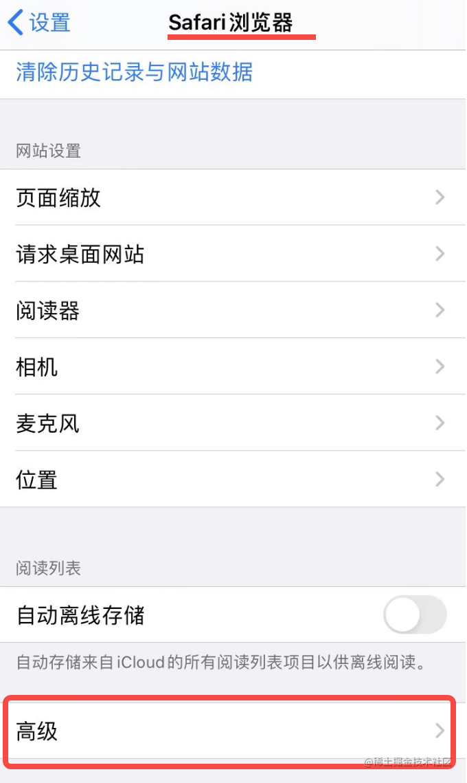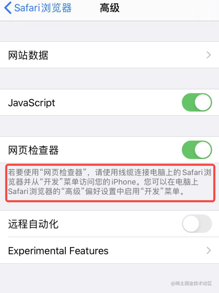 这个是在 设置 > safari 浏览器 > 高级里开启的:
