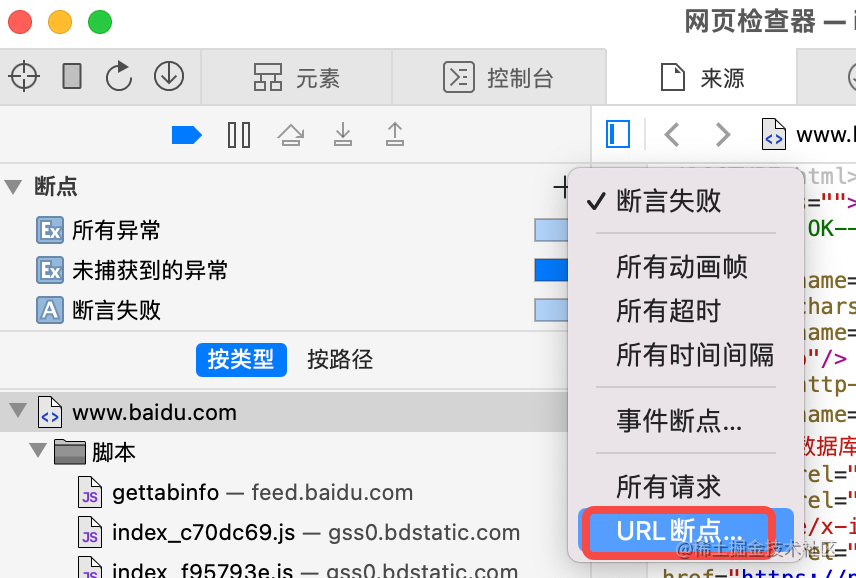 可以在请求某个 URL 的时候断住,这是 URL 断点: