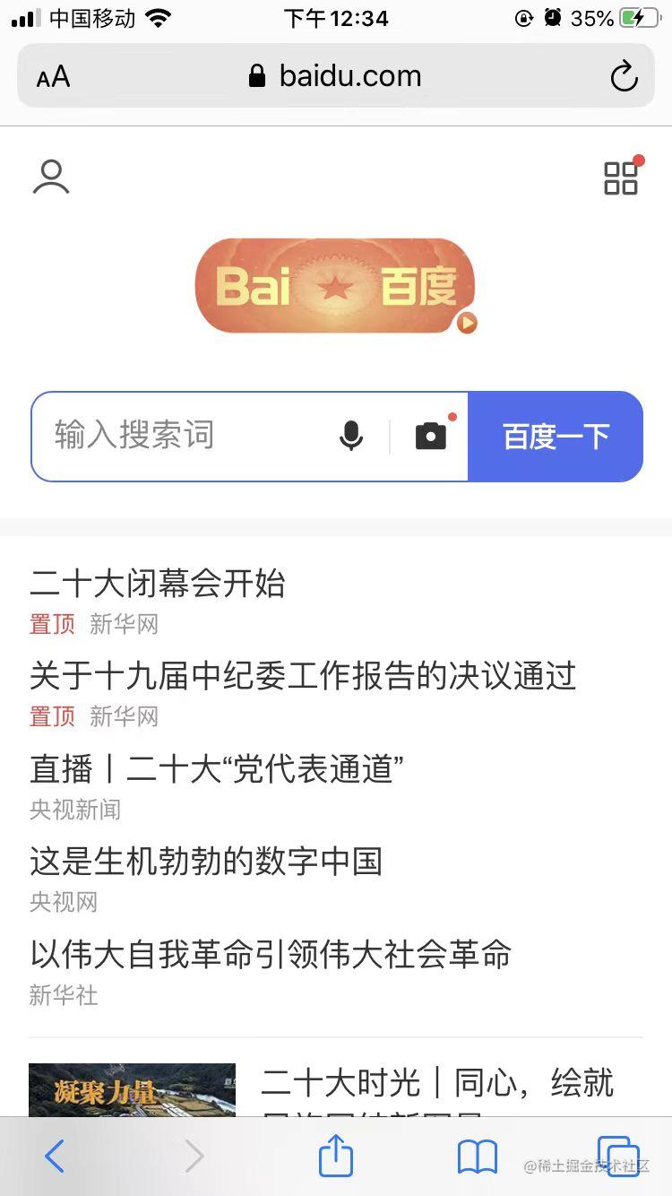 之后在 Safari 浏览器里打开一个页面,比如 baidu.com: