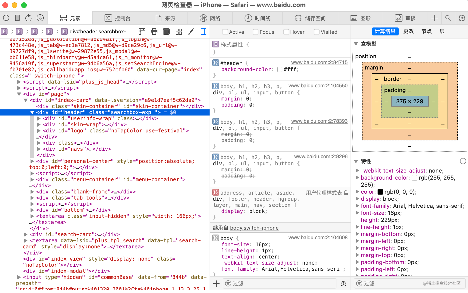 调试 iphone 上的网页要用 Safari 浏览器,支持各种断点、支持元素审查、网络请求的调试等等各种功能。