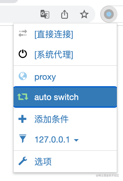 除此以外,chrome 还有一个浏览器插件可以更细粒度的控制代理,叫做 SwitchyOmega: