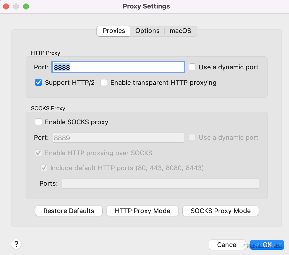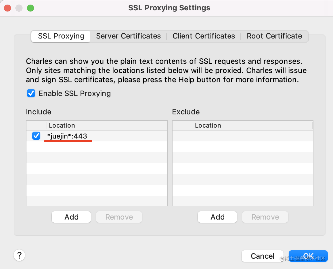 这个可以在 Charles 的 Proxy > Proxy Setting 里配置: