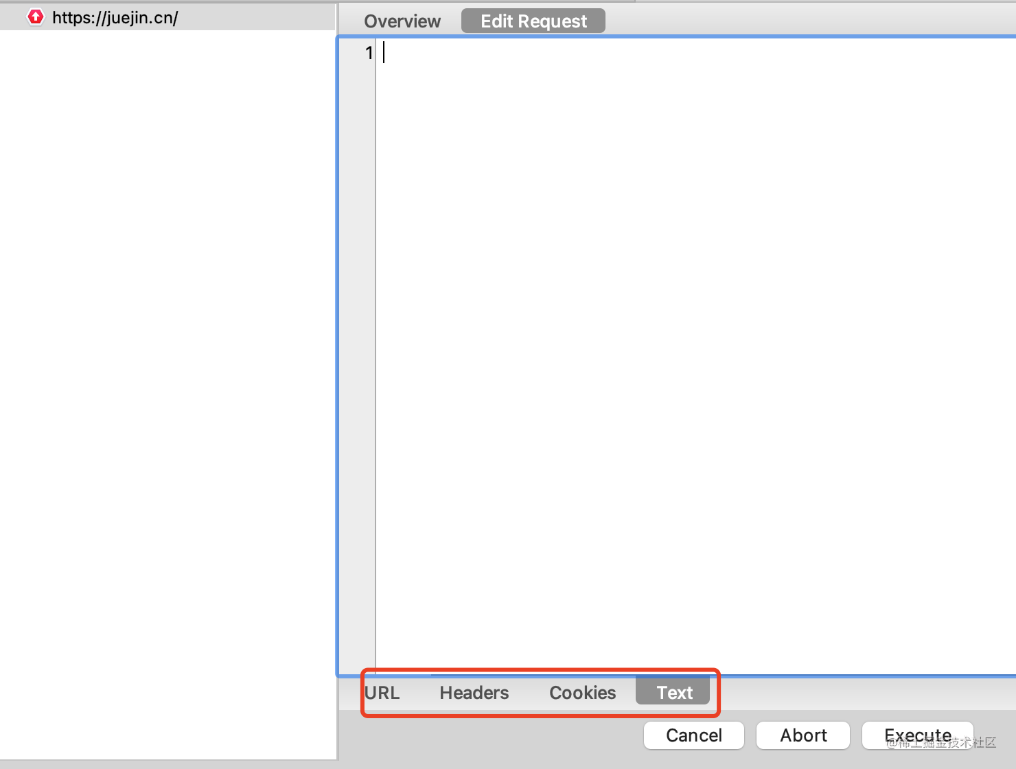 下面三个按钮分别是取消、终止、执行修改后的请求的意思。