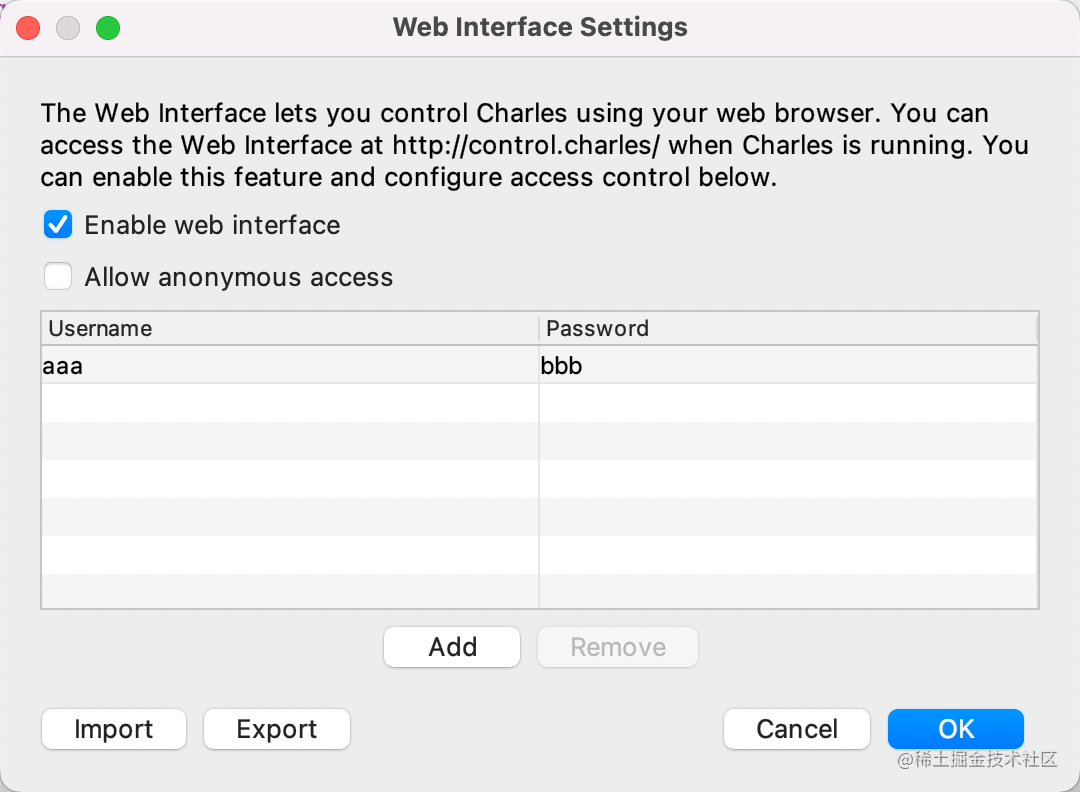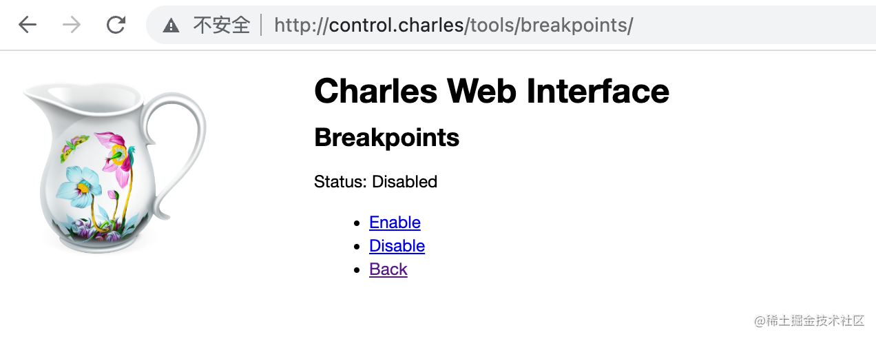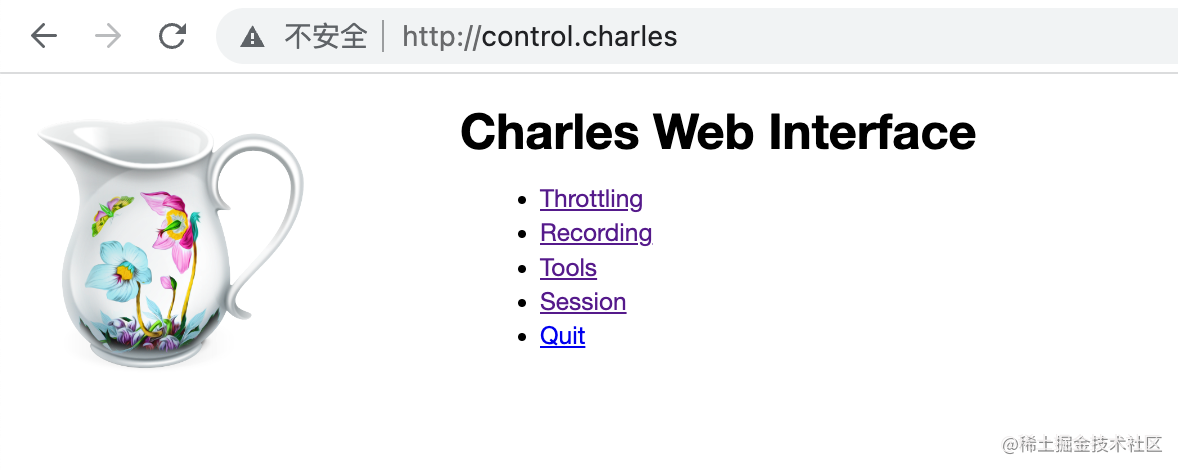 charles 也支持通过 web 网页来控制,在 Proxy > Web Interface Settings 里开启: