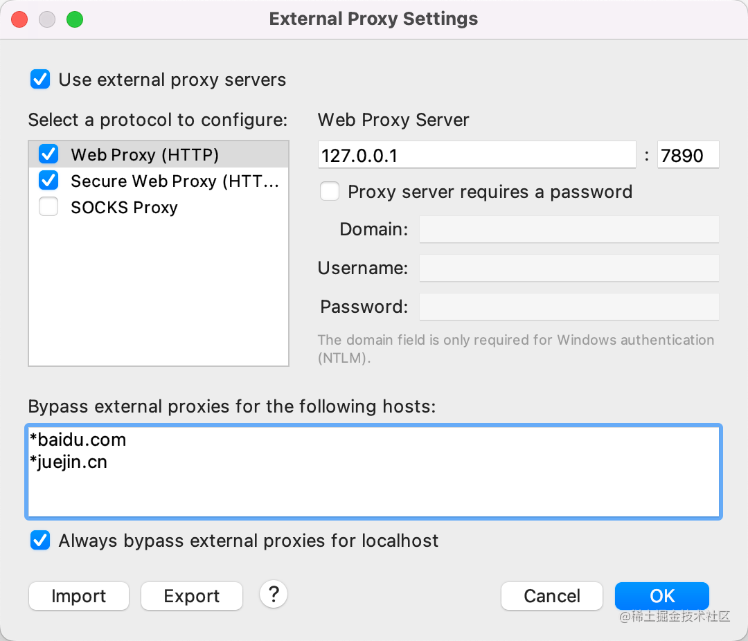还可以在 bypass 里设置白名单,这些 url 不走别的代理服务器。