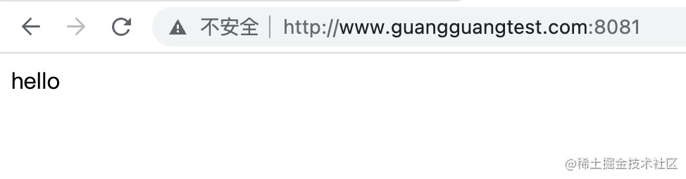 比如我配置了 www.guangguangtest2.com 的域名到 127.0.0.1 的映射,之后就可以浏览器访问这个域名了: