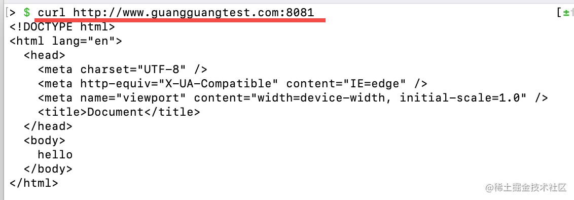 除了浏览器,在 Terminal 也是可以通过 curl 访问的: