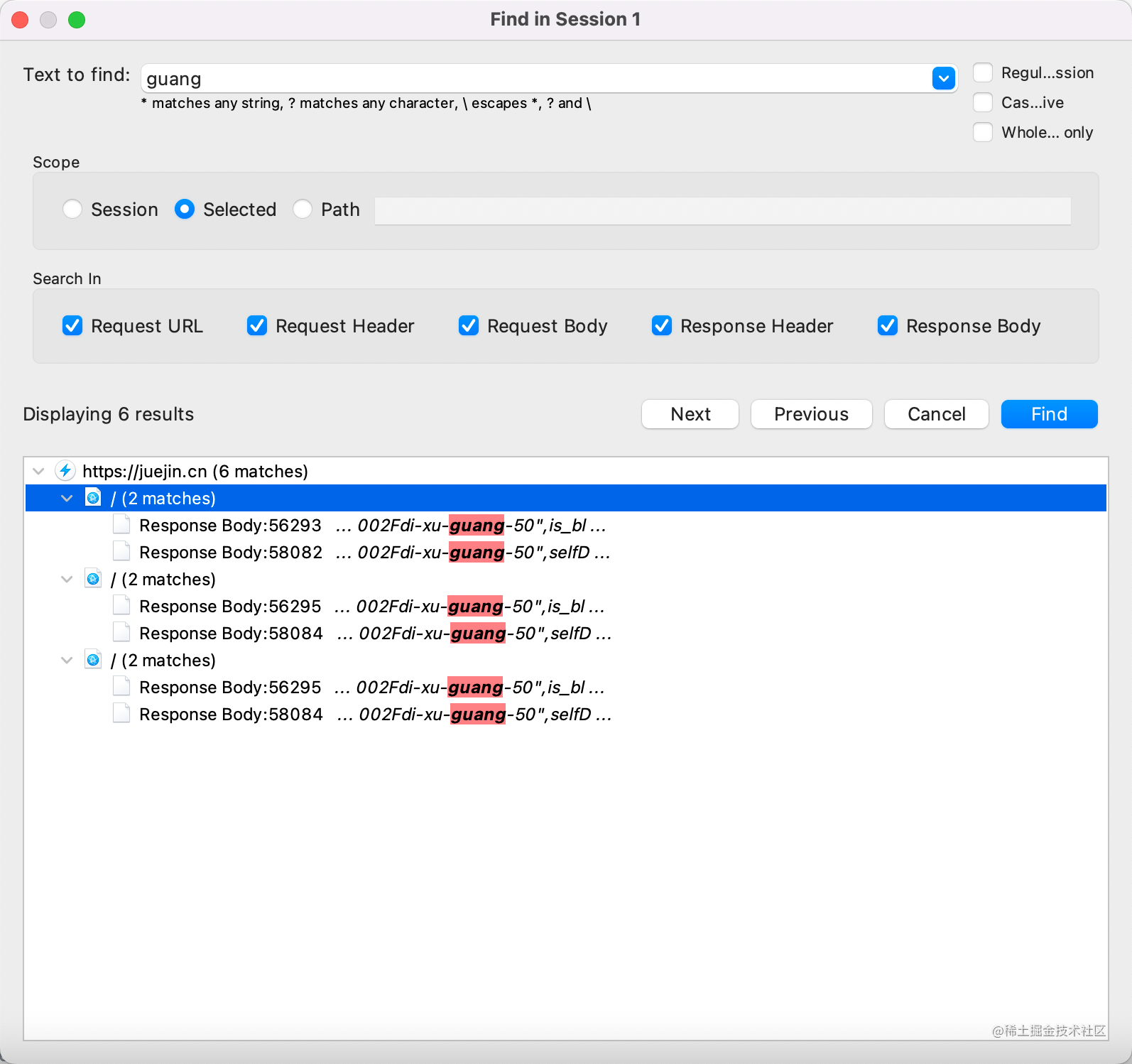 - Find:在 session、path 等范围内根据关键词搜索